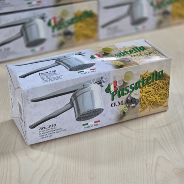 Met de roestvrijstalen aardappelpers van O.M.A.C. maak je in een handomdraai luchtige puree en fijne groentepuree. Deze pers is volledig vervaardigd uit hoogwaardig RVS en daardoor bijzonder sterk, duurzaam en hygiënisch.